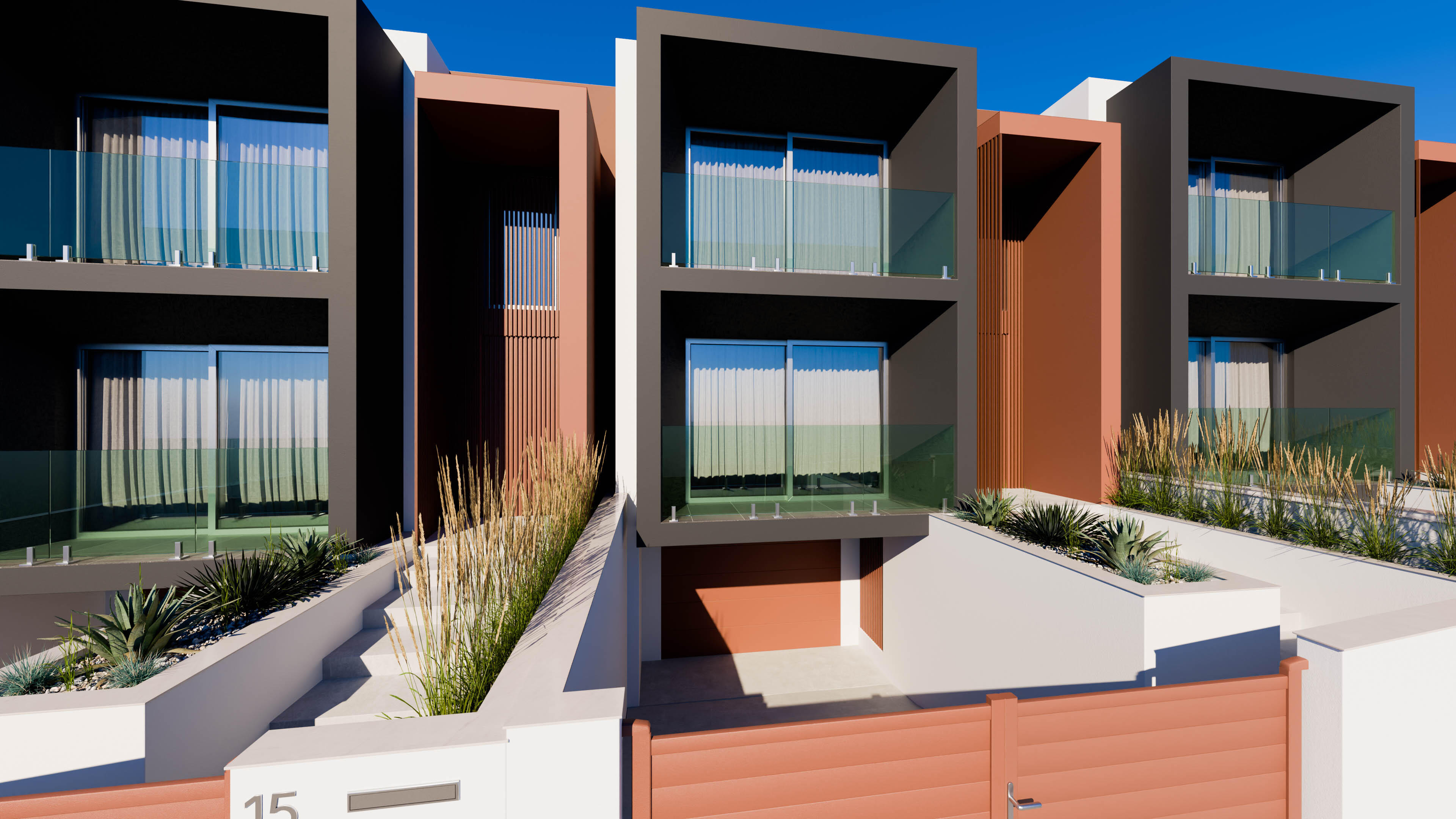 Mise en valeur architecturale d’un ensemble de trois villas mitoyennes aux lignes cubiques et modernes